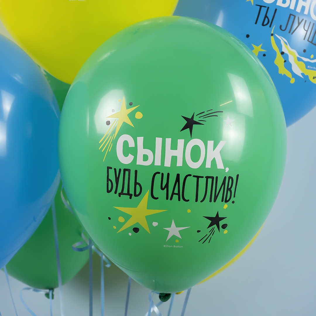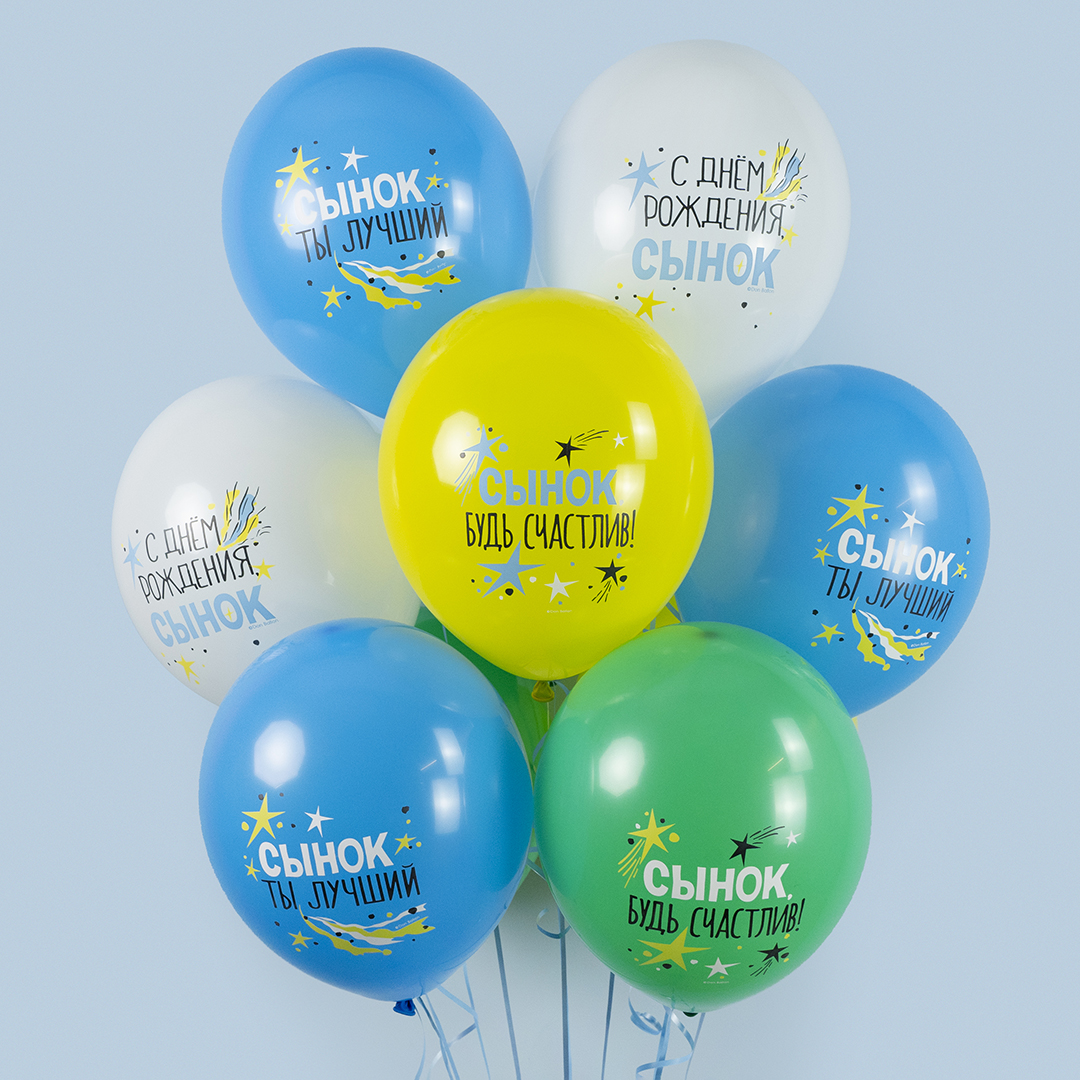 Шар (12»/30 см) С Днем Рождения, Сынок, Ассорти, пастель, 1 ст.