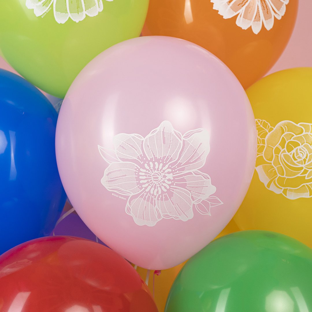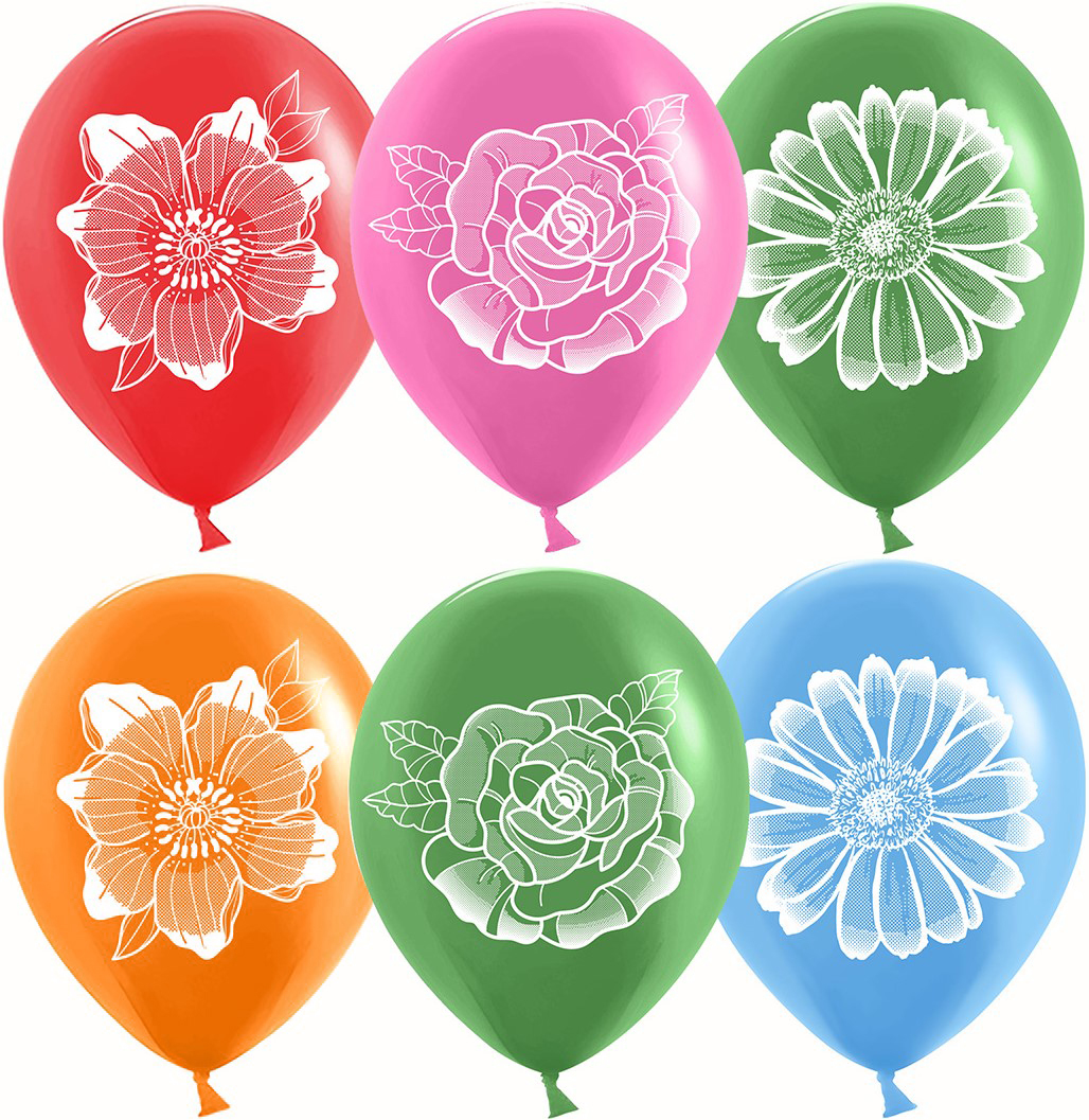 Шар (12»/30 см) Цветы, Ассорти, пастель, 2 ст.